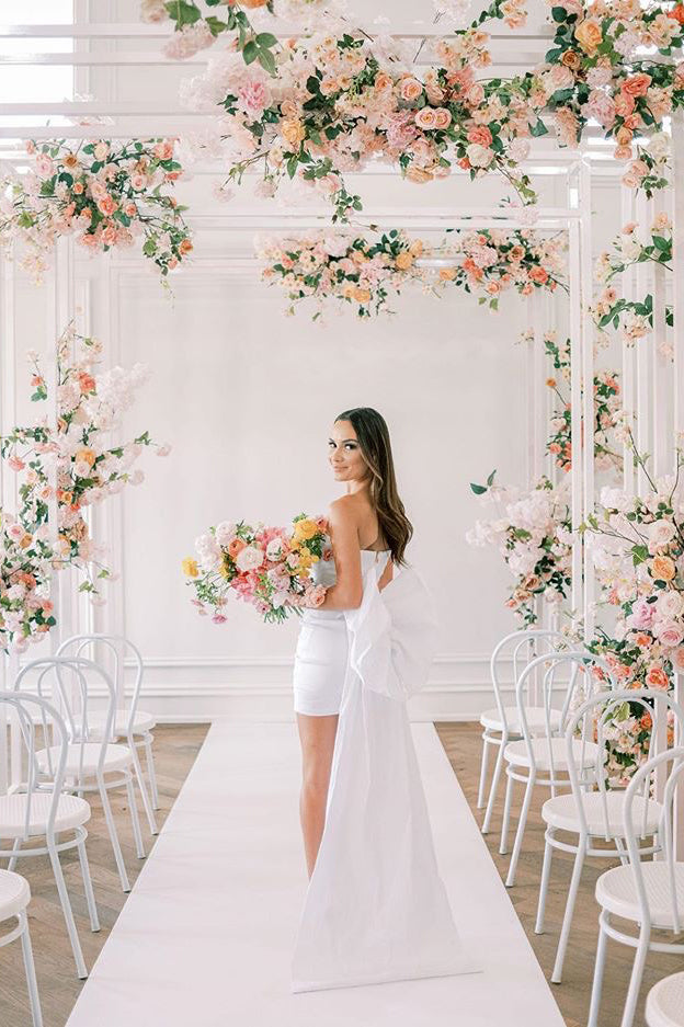 Show stopping and luxurious. Our Adore 2way dress is made for that iconic moment. Crafted from stretch taffeta, fully lined. Featuring a fully structured bodice, invisible center back zipper and removable bow. This dress is designed to make your moment iconic.